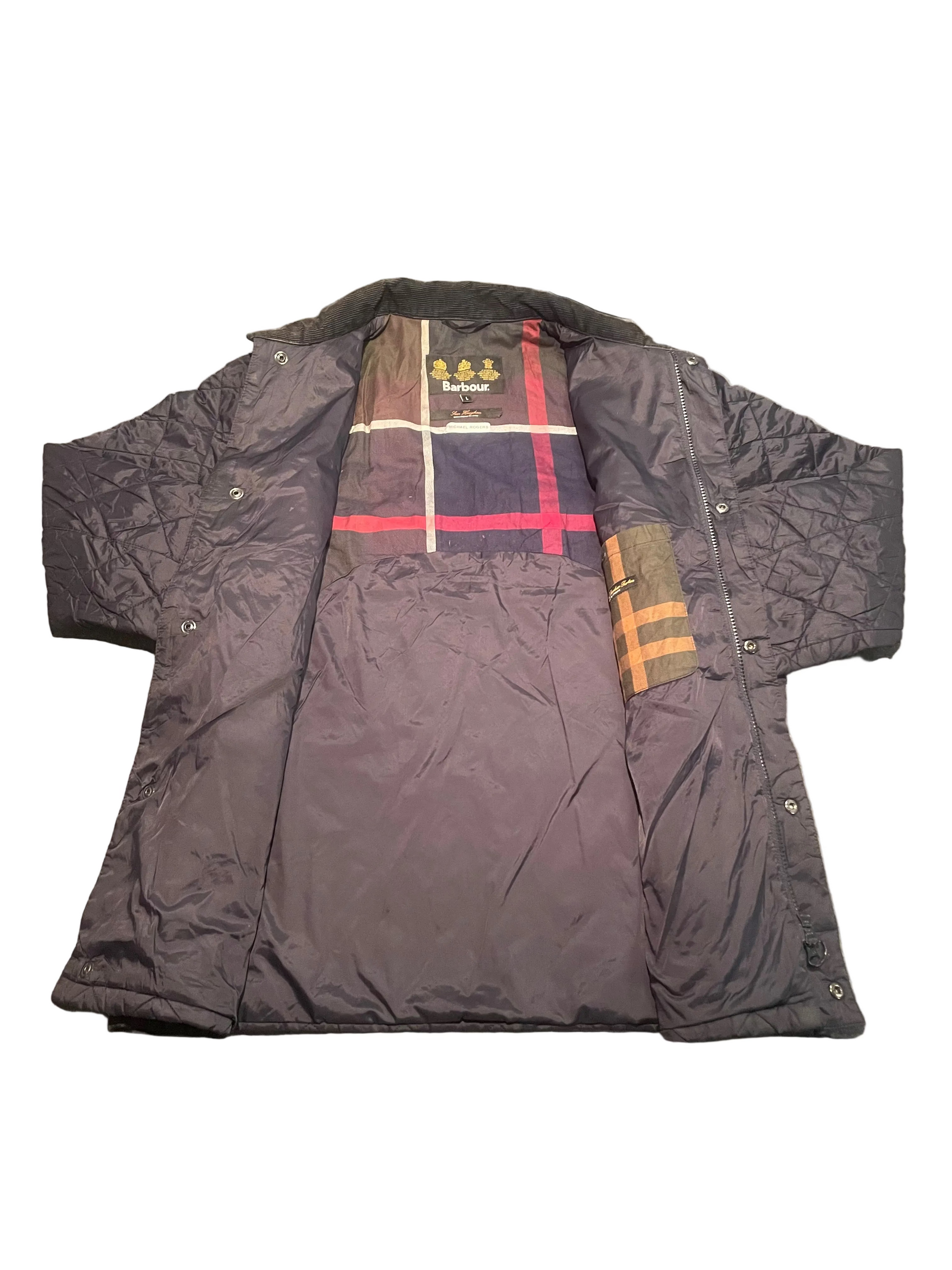 This classic Barbour quilted jacket is the ultimate wardrobe essential for any bloke who refuses to compromise on style or warmth. Cut in a generous size L, this timeless black number layers beautifully over everything from casual tees to smart shirts. The signature quilted construction traps heat without the bulk, while the durable outer shell laughs in the face of British drizzle. Perfect for countryside rambles, weekend errands, or just looking effortlessly put-together. A proper investment piece that'll outlast most of your mates' jackets combined.