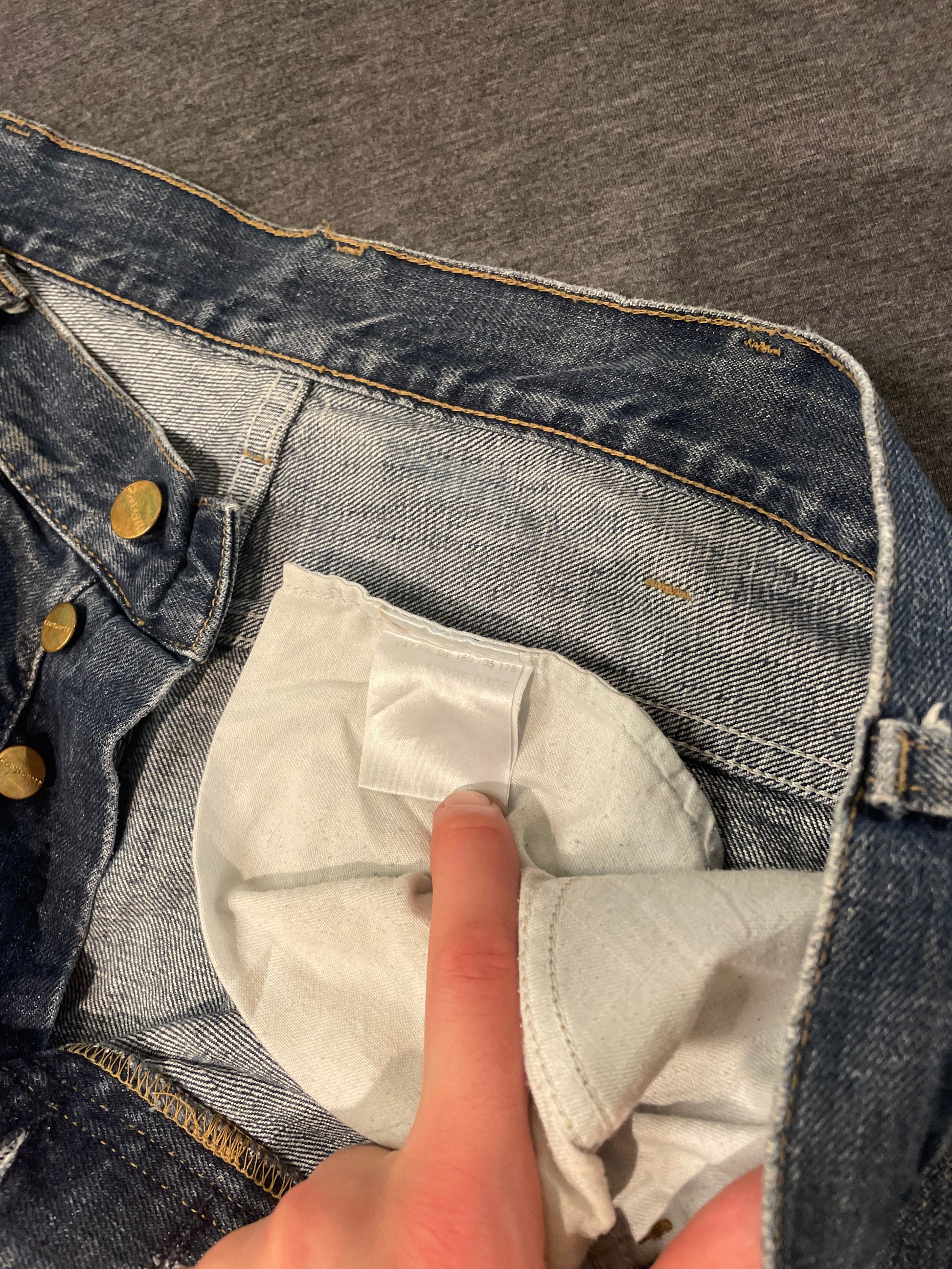 Missing carhartt badge, authentic workwear. Heel drag pictured.