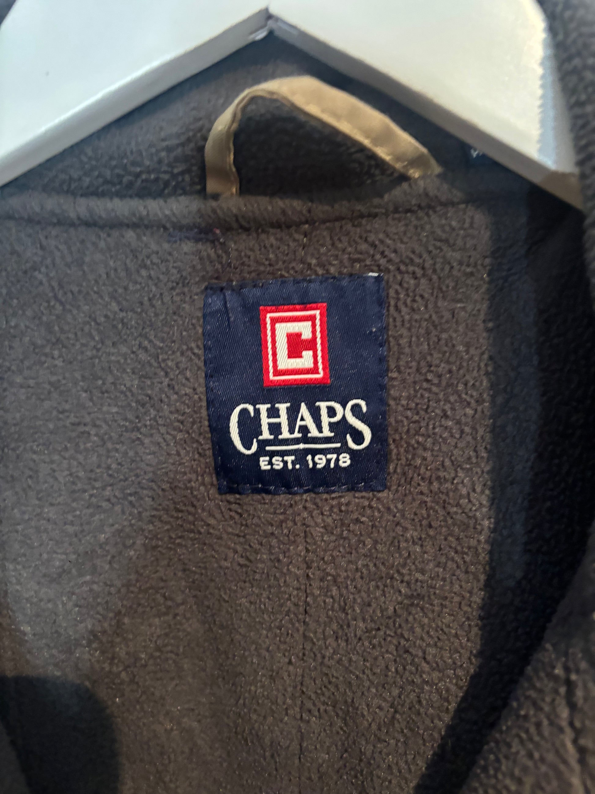 Get ready to make a statement in our Chaps Bomber Jacket, Fleece Lined in Cream, Size L. Stay warm and stylish with this must-have jacket, featuring a soft fleece lining for extra warmth. Perfect for any occasion, this jacket is sure to become your go-to piece.
