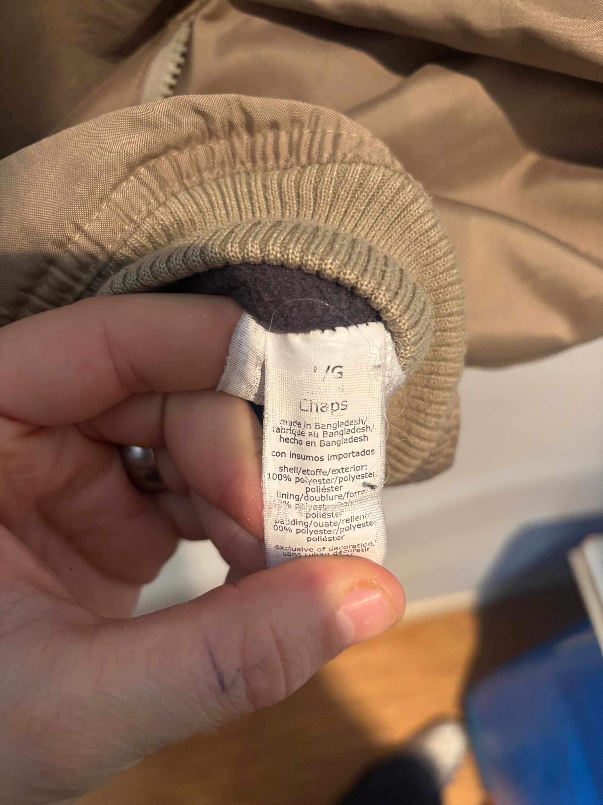 Chaps Bomber Jacket, Fleece Lined, Cream, L
