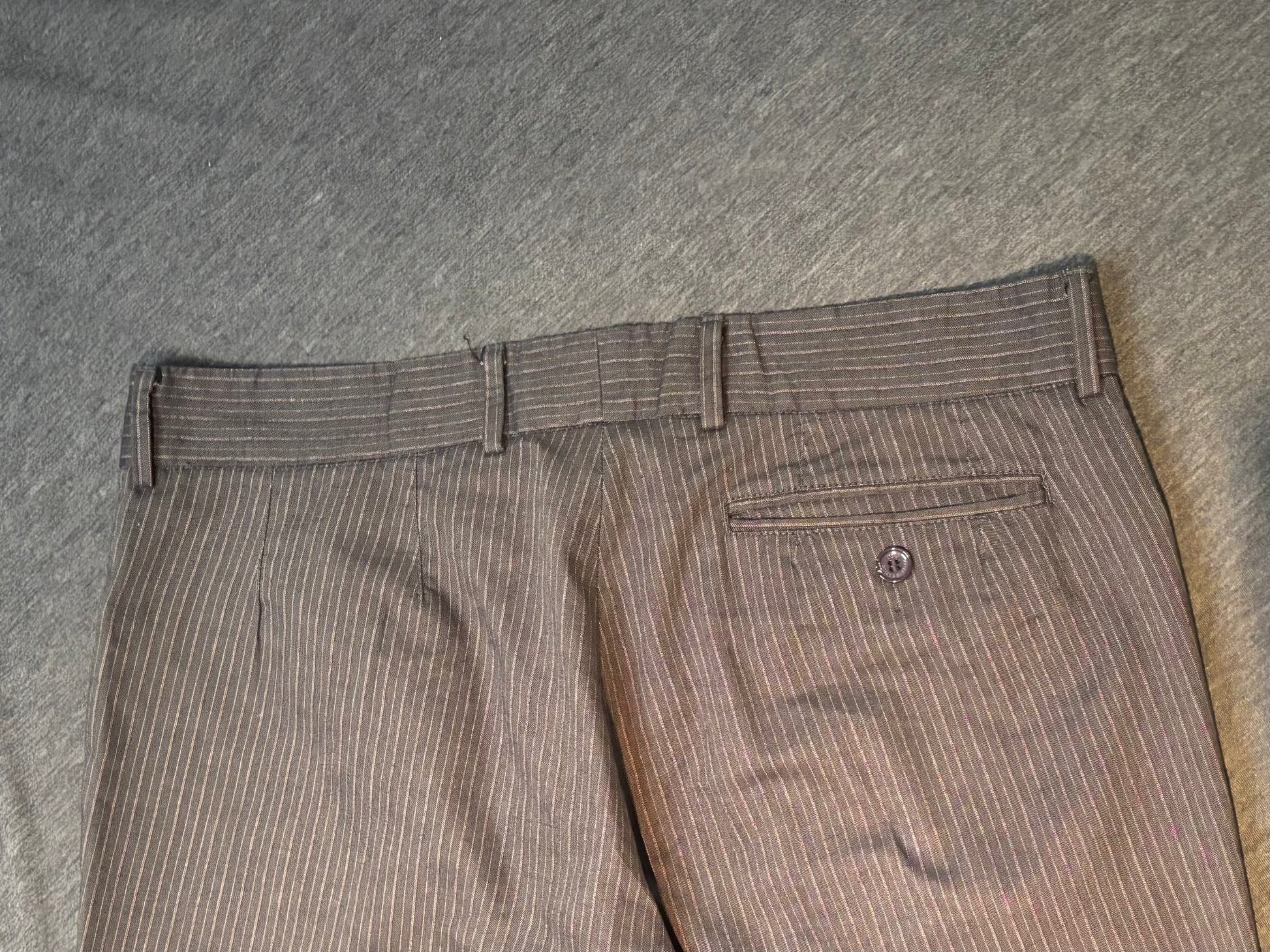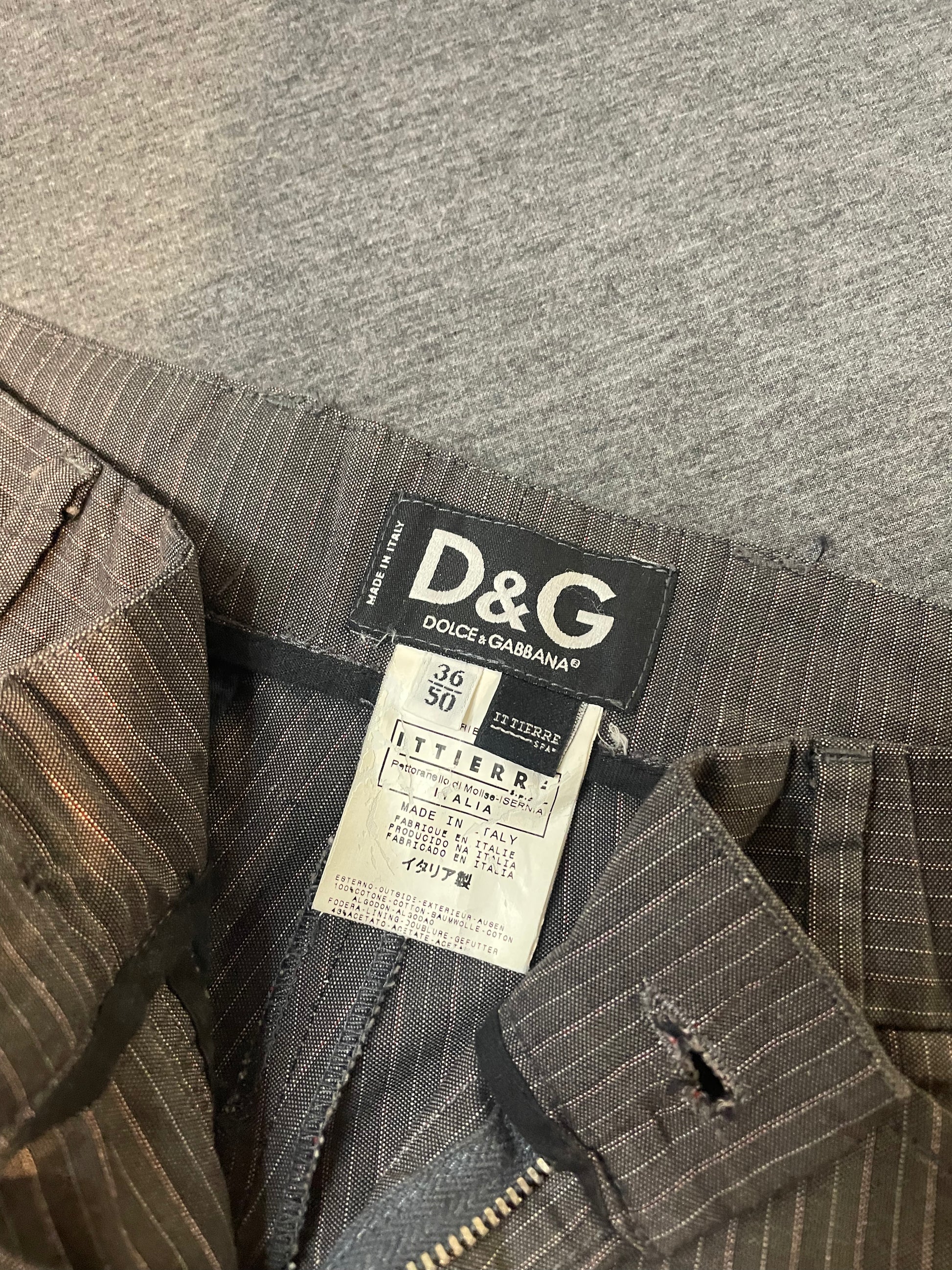 Elevate your style game with these Dolce and Gabbana Designer Pinstripe Trousers. Made with premium material, these trousers are designed to fit perfectly (like a glove!). Add a touch of sophistication to your wardrobe with this unique and stylish piece. (Tailor-made for the fashion-forward!)