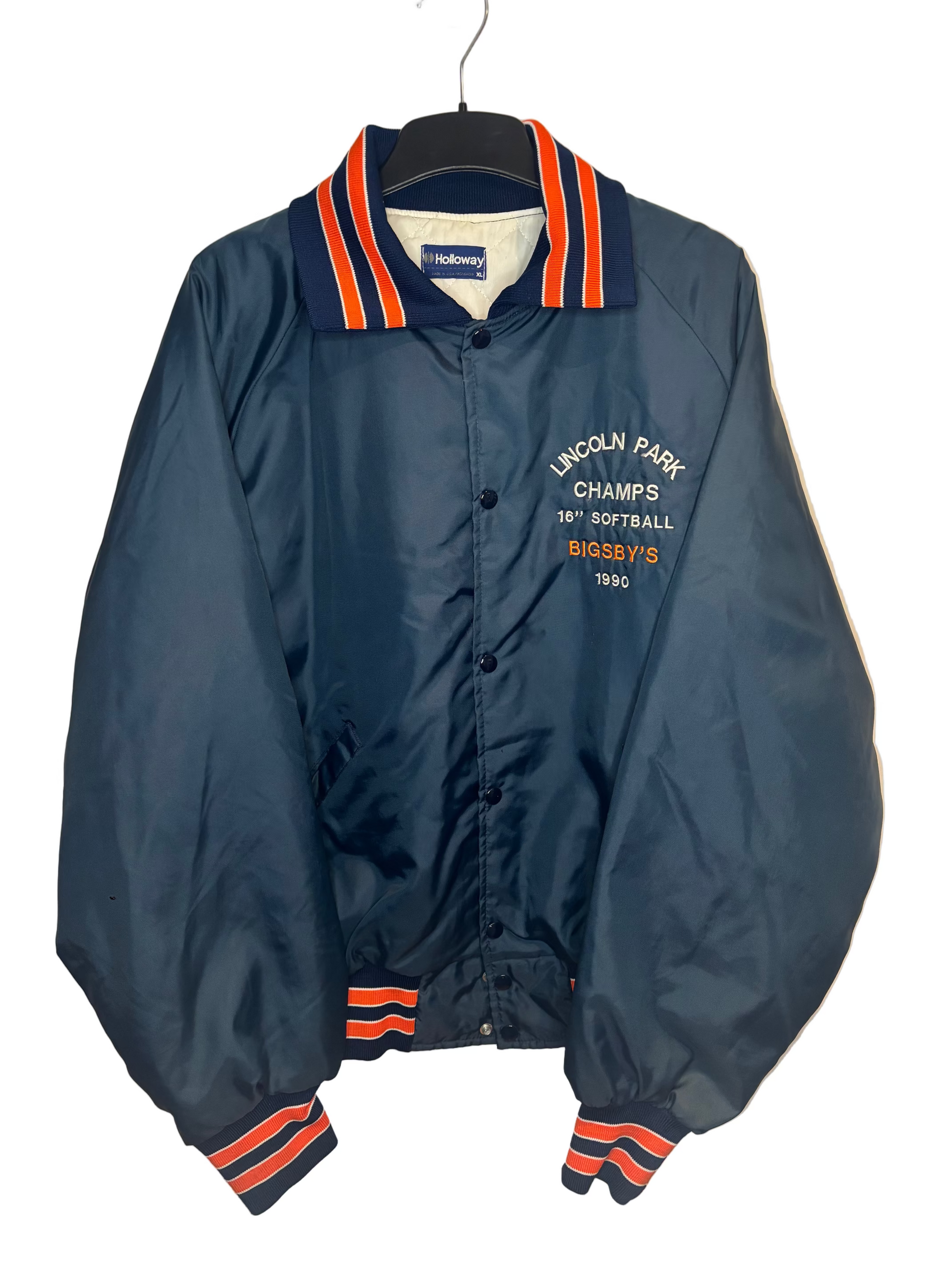Quilt lined varsity jacket, XL fits L/XL. No wash tag.