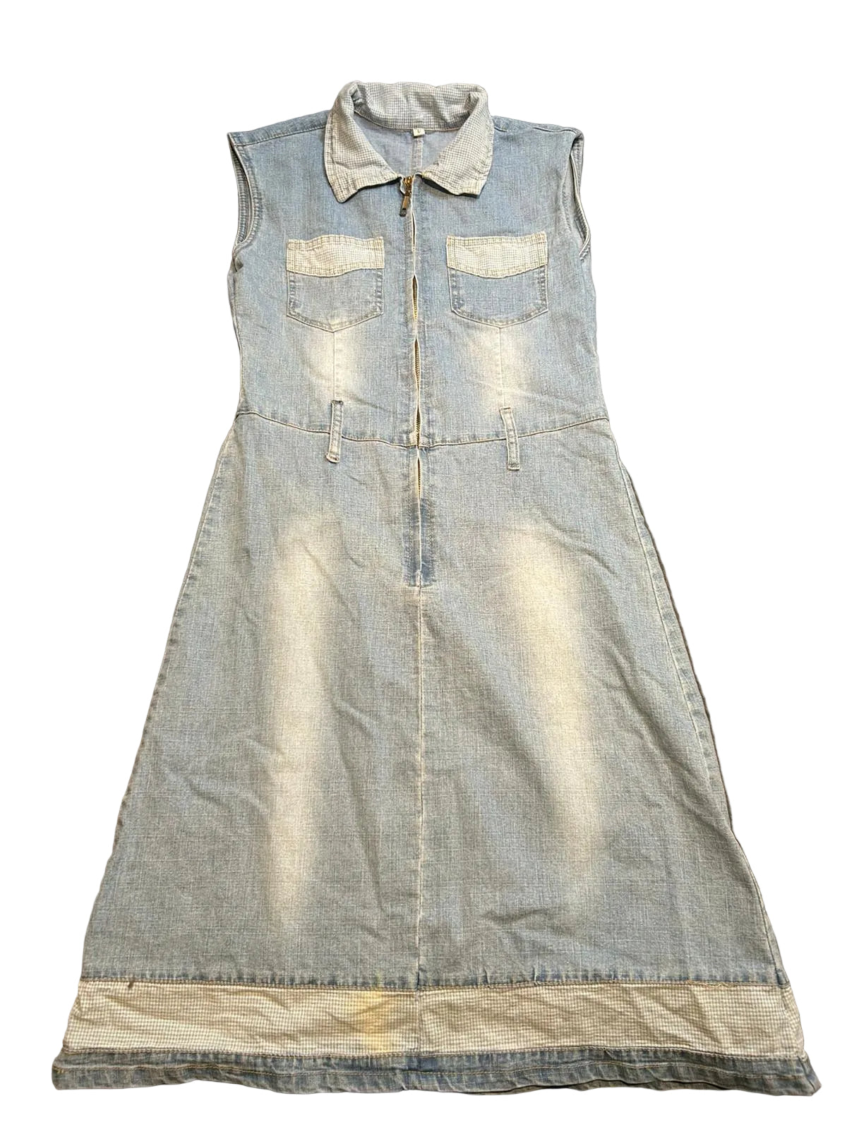 Rock that denim look with our sleeveless maxi dress! Perfect for any occasion, this dress will keep you cool and stylish. With a flattering fit and convenient size L, you'll want to wear it everywhere. Don't miss out on this must-have dress for the season!