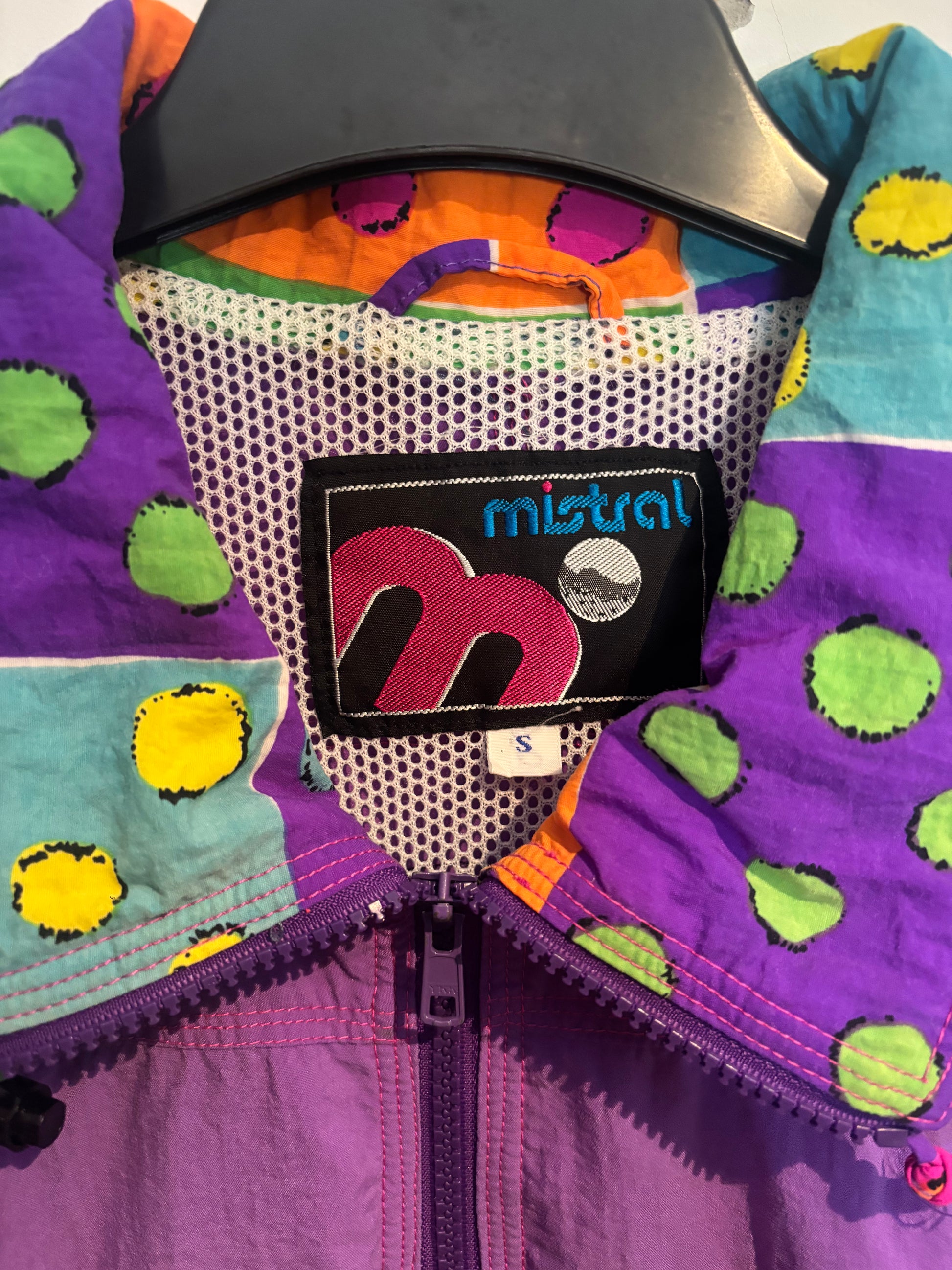 "Get ready to hit the slopes or the party in style with the Mistral Retro Funky 90s Ski Jacket! This jacket not only boasts a trendy 90s retro design, but it also offers top-notch functionality and warmth. Stay comfortable and look cool this winter with this must-have jacket."Mesh in lining, Multicolour Love detailing. great condition, super unique jacket.