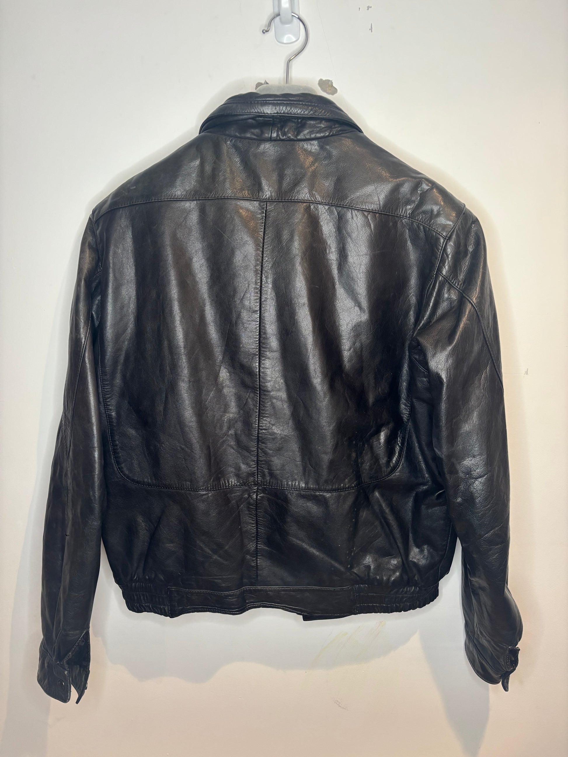 "Stay stylish and comfortable in the Roberto Gellini Italian Leather Jacket. Made with high-quality leather, this jacket adds a touch of Italian elegance to any outfit. Perfect for any occasion, this jacket is a must-have for the fashion-forward individual. (Leather never goes out of style!)" Thick bomber style leather jacket, Italian designer, EU44 fits like mens L